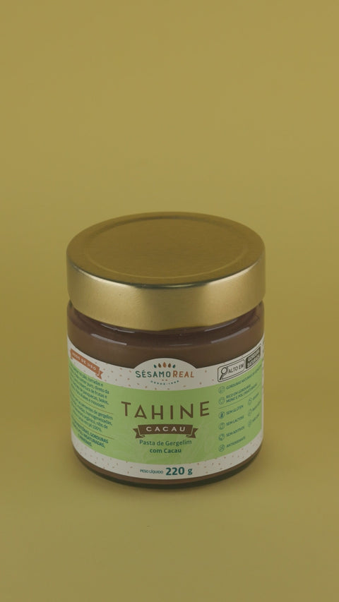 O Tahine Cacau Sésamo Real é uma deliciosa combinação de Tahine Tradicional (pasta de gergelim descascado), Cacau 100%, Nibs de cacau e Açúcar Demerara orgânico.